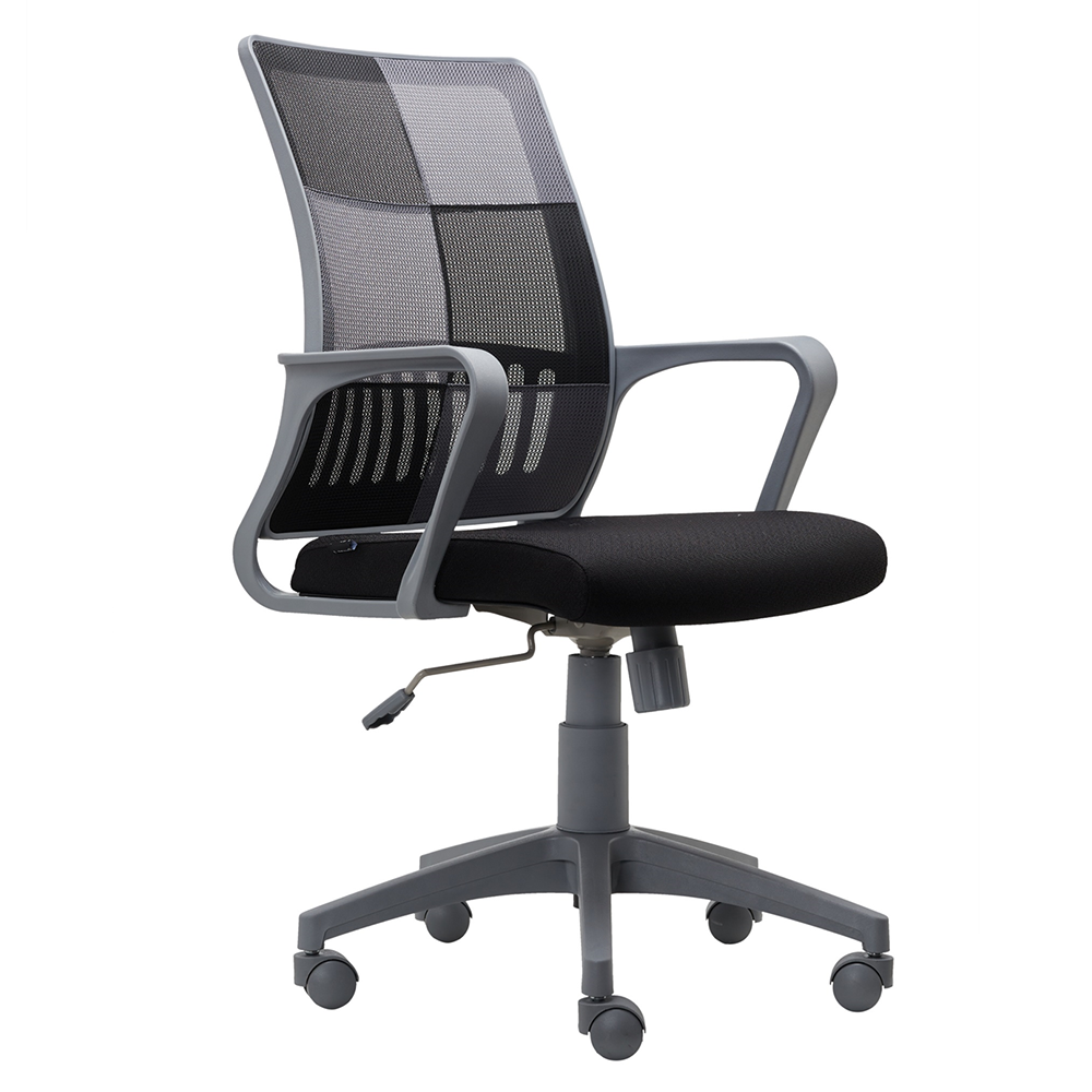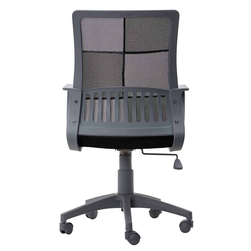 The chair back is made of high-quality plastic frame covered with special mesh fabric, the cushion is upholstered in durable fabric or synthetic leather, the load-bearing plastic arms, the swivel base with adjustable height, and smooth mobility.