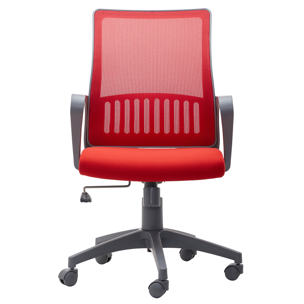 The chair back is made of high-quality plastic frame covered with special mesh fabric, the cushion is upholstered in durable fabric or synthetic leather, the load-bearing plastic arms, the swivel base with adjustable height, and smooth mobility.