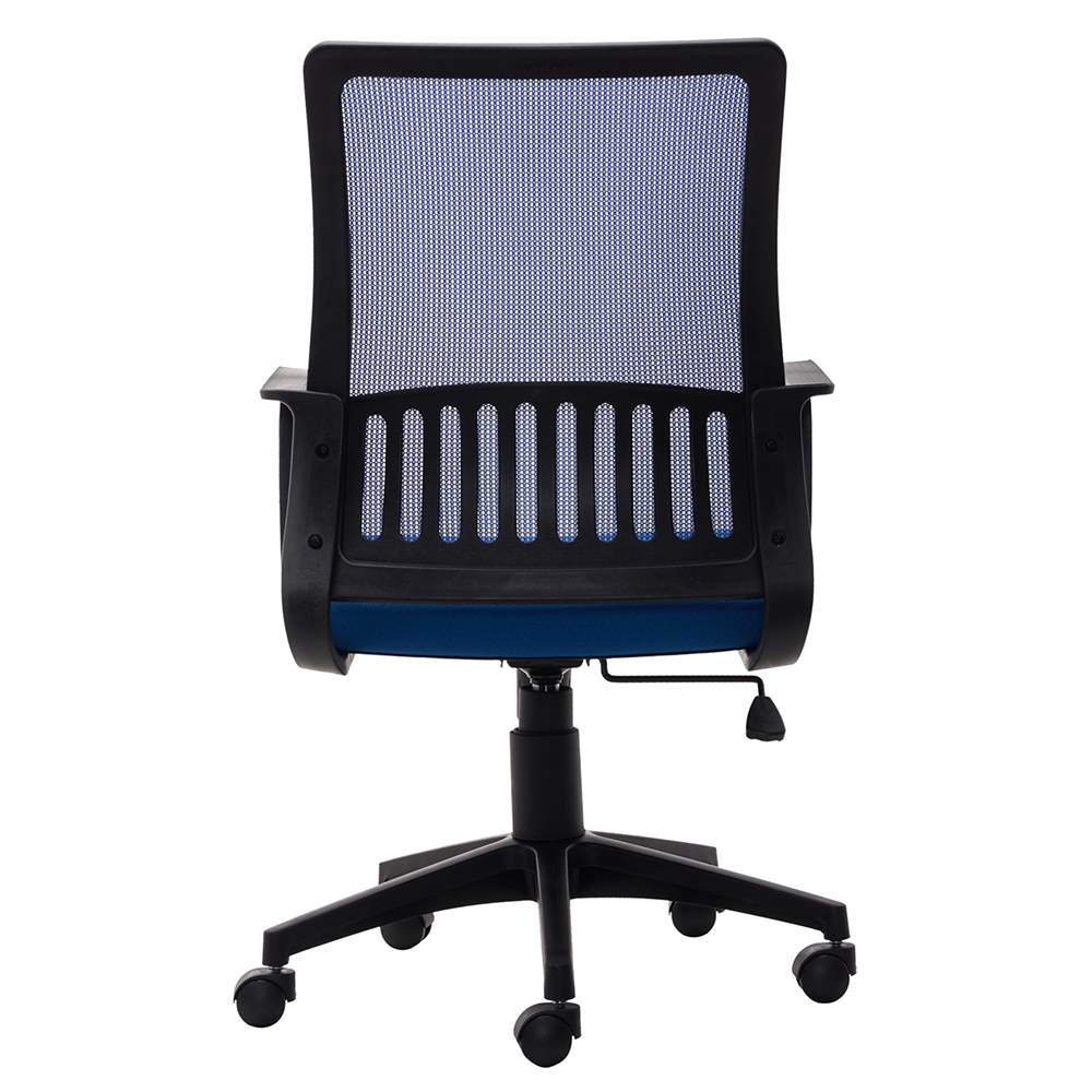 - Mesh fabric color of chair back: Blue mesh.