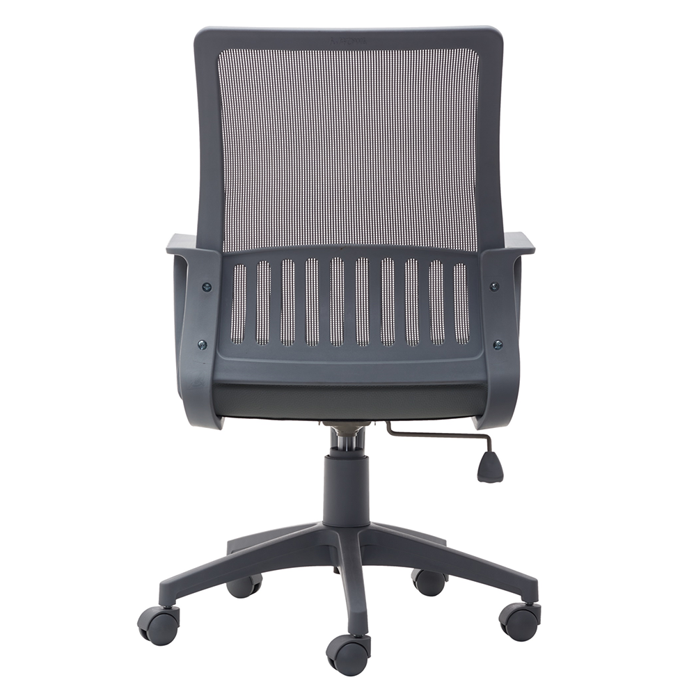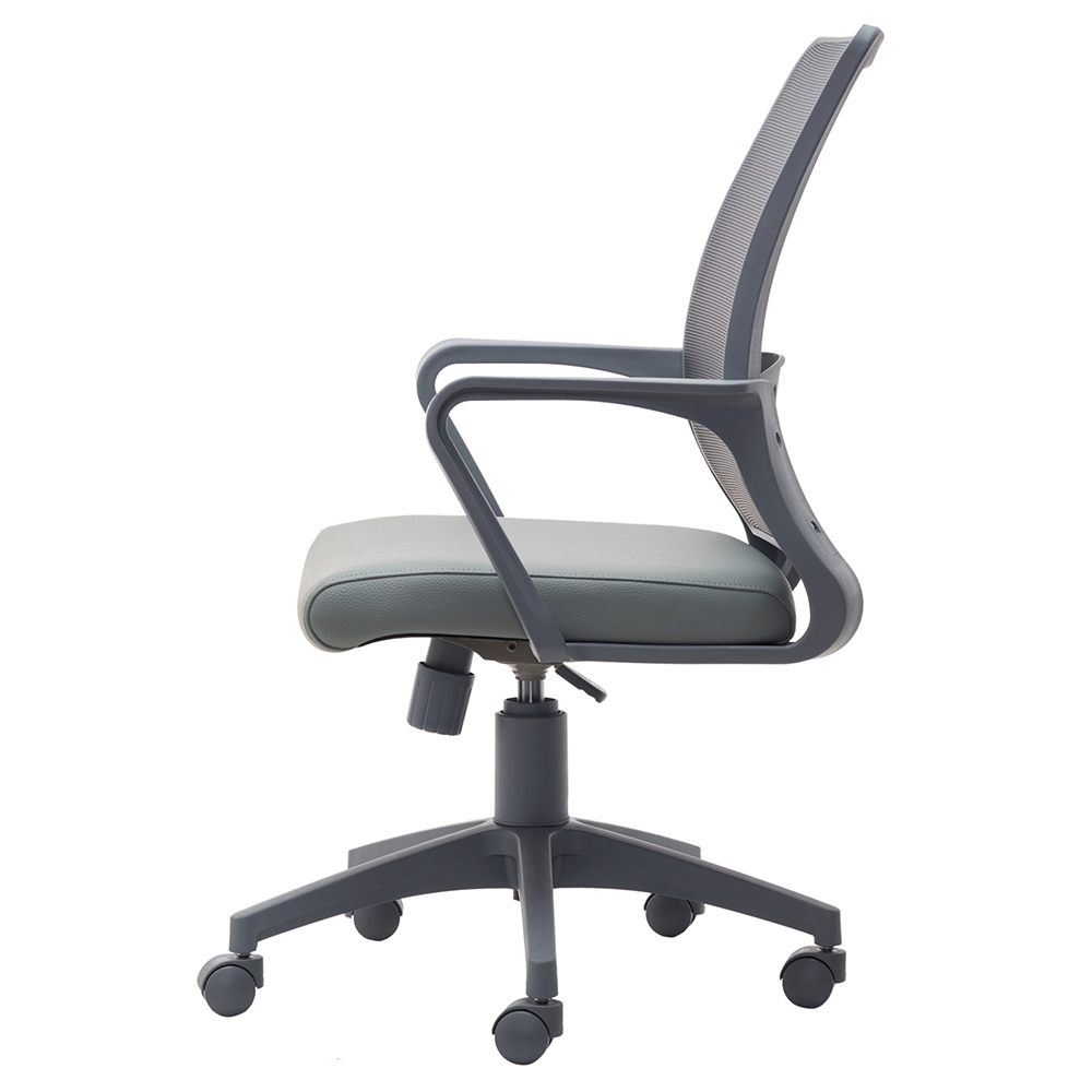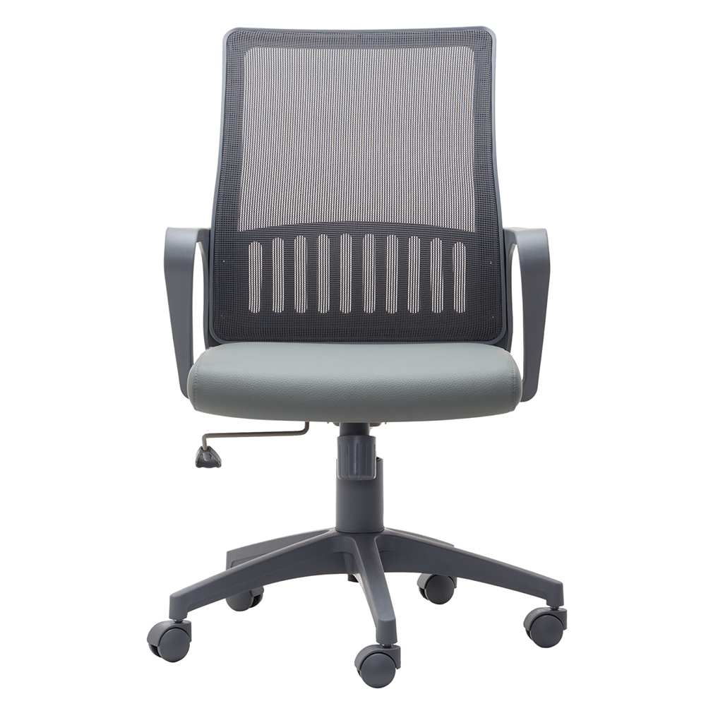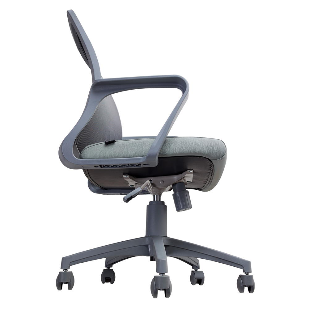 The chair back is made of high-quality plastic frame covered with special mesh fabric, the cushion is upholstered in durable fabric or synthetic leather, the load-bearing plastic arms, the swivel base with adjustable height, and smooth mobility.