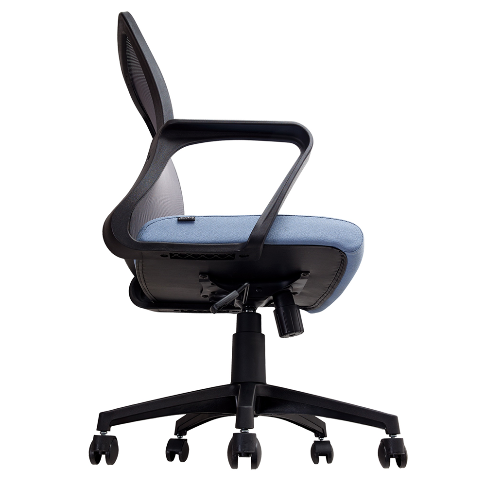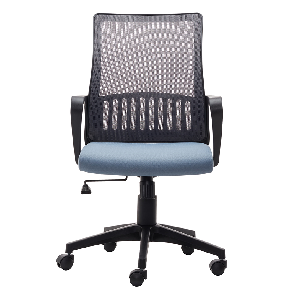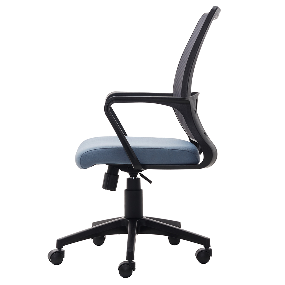 The chair back is made of high-quality plastic frame covered with special mesh fabric, the cushion is upholstered in durable fabric or synthetic leather, the load-bearing plastic arms, the swivel base with adjustable height, and smooth mobility.