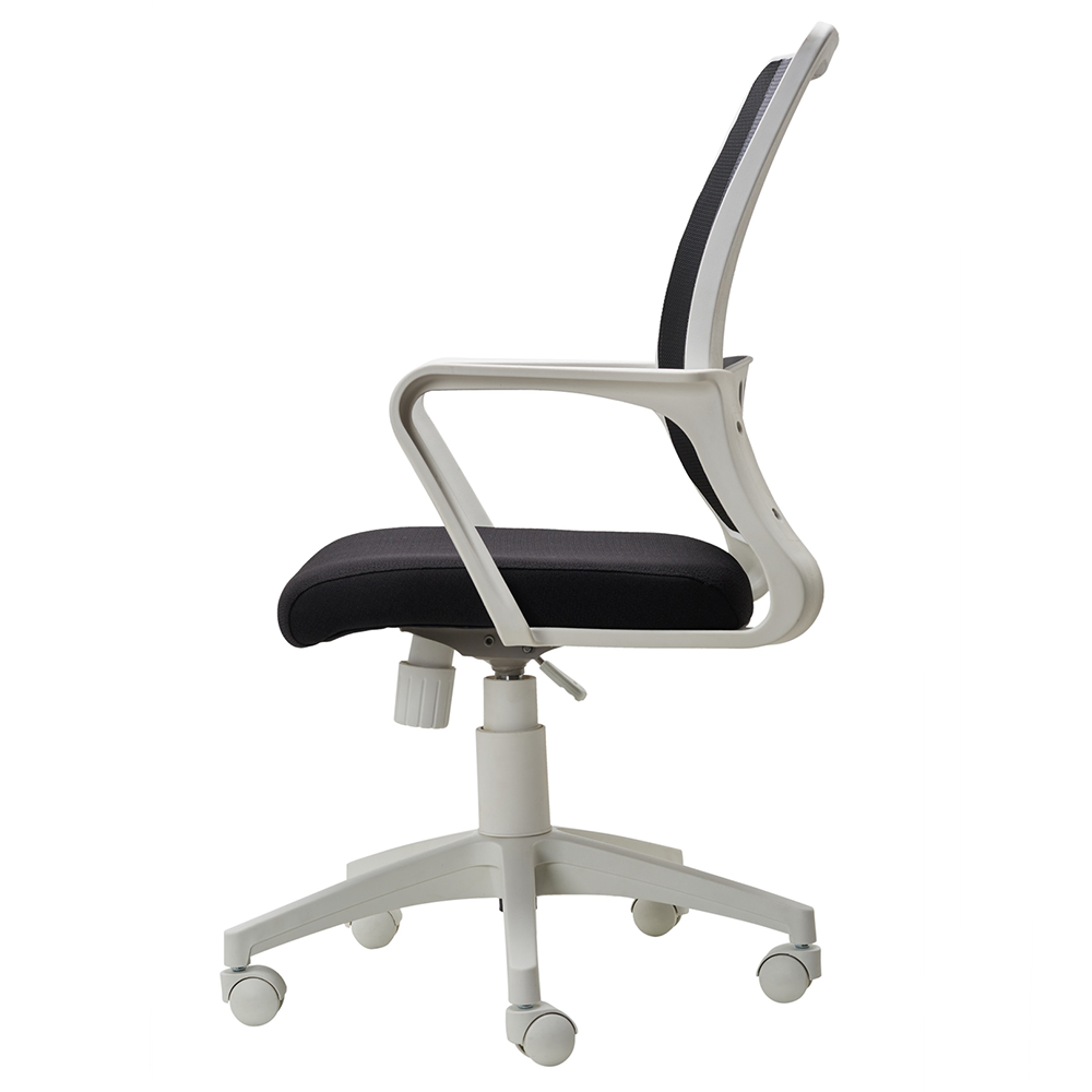 The chair back is made of high-quality plastic frame covered with special mesh fabric, the cushion is upholstered in durable fabric or synthetic leather, the load-bearing plastic arms, the swivel base with adjustable height, and smooth mobility.