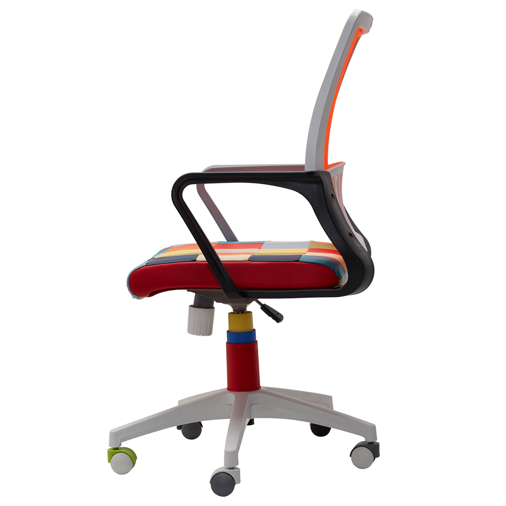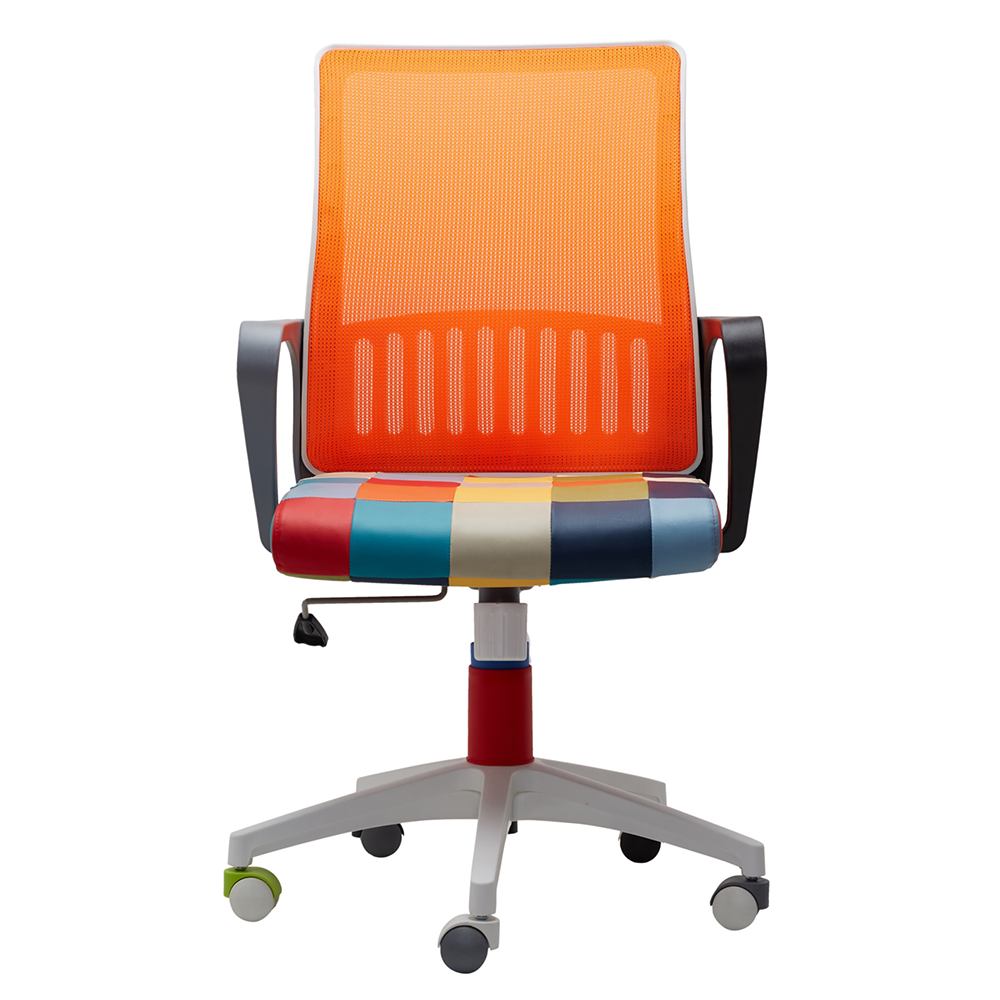 - Mesh fabric color of chair back: Orange mesh.
